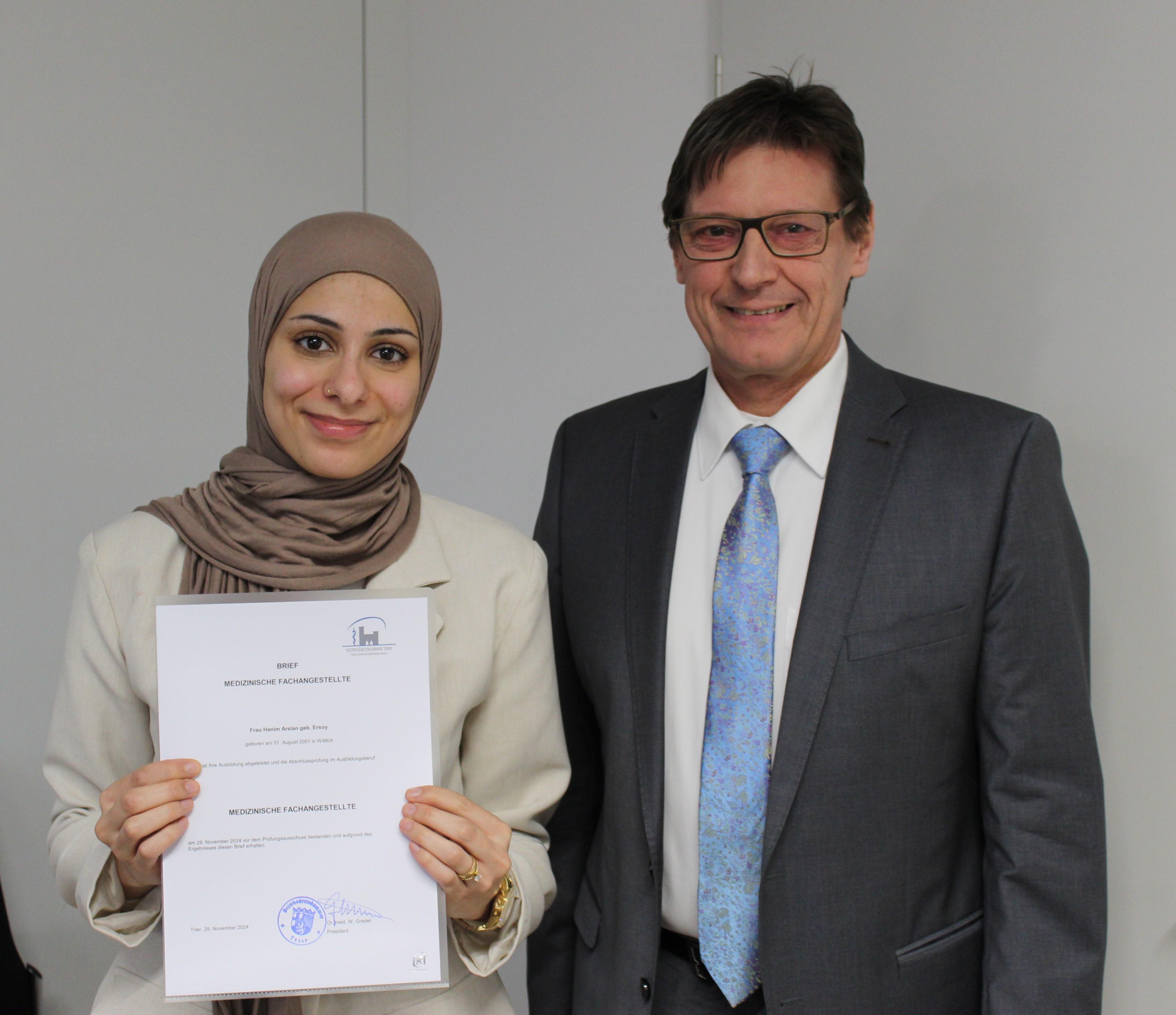 Am 11.12.2024 wurden 14 Medizinischen Fachangestellten, die erfolgreich die sogen. Herbstprüfung absolviert hatten, in einer kleinen Feierstunde in der Geschäftsstelle der Bezirksärztekammer Trier die Zeugnisse überreicht.