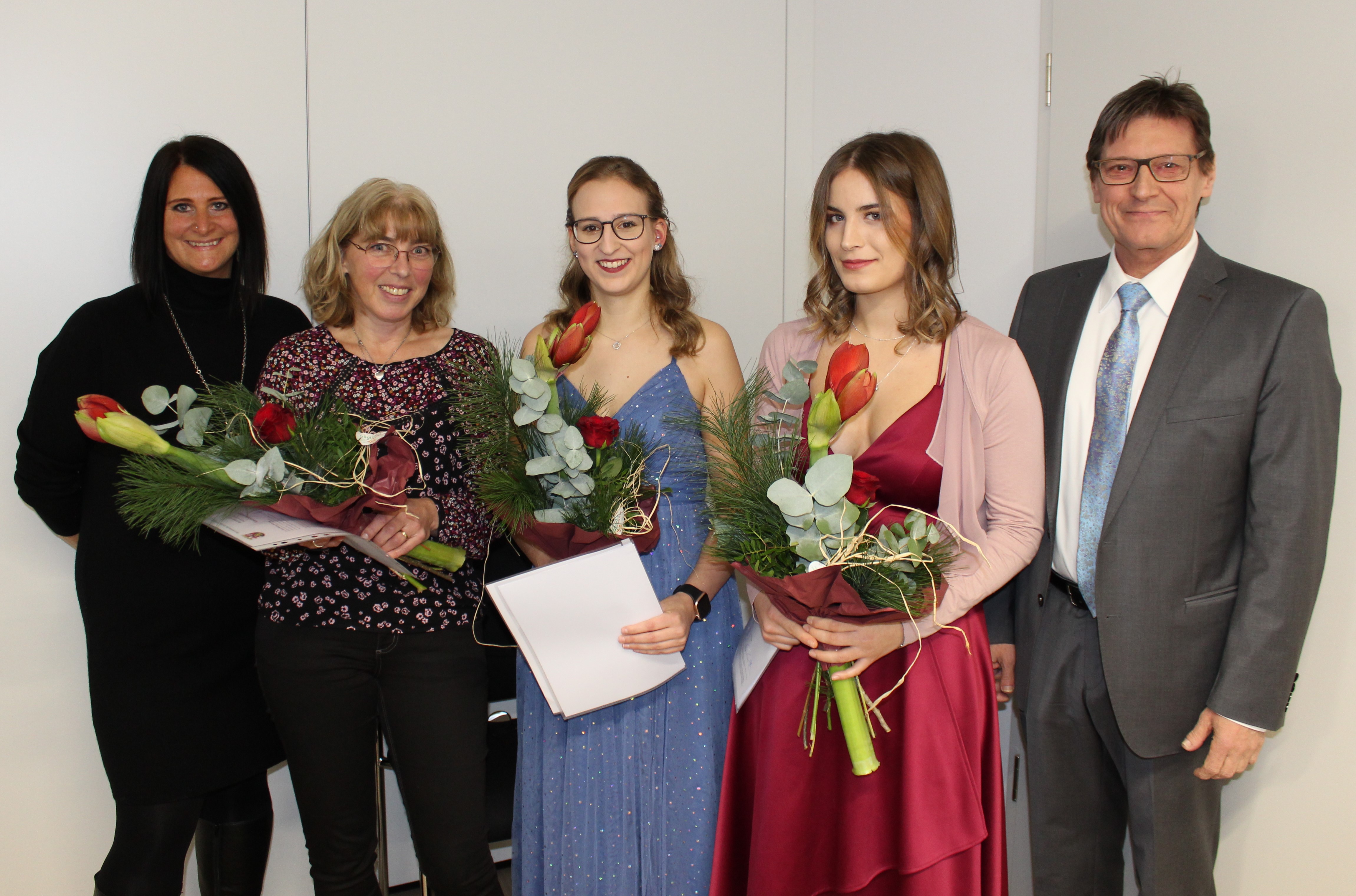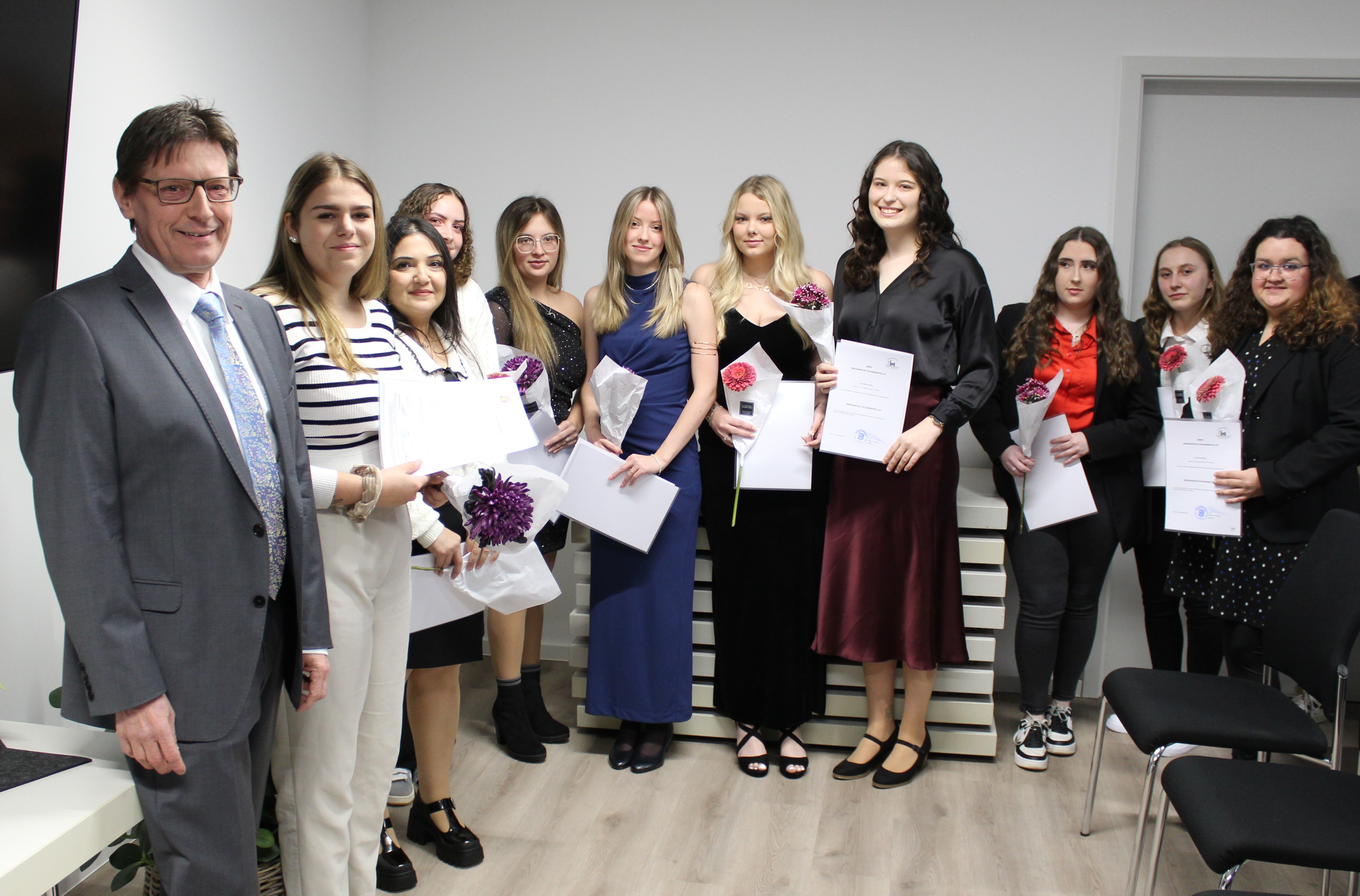 Dr. Walter Gradel mit den Absolventinnen der BBS Gerolstein und Fr. OStDir. Simone Schuh (li.).