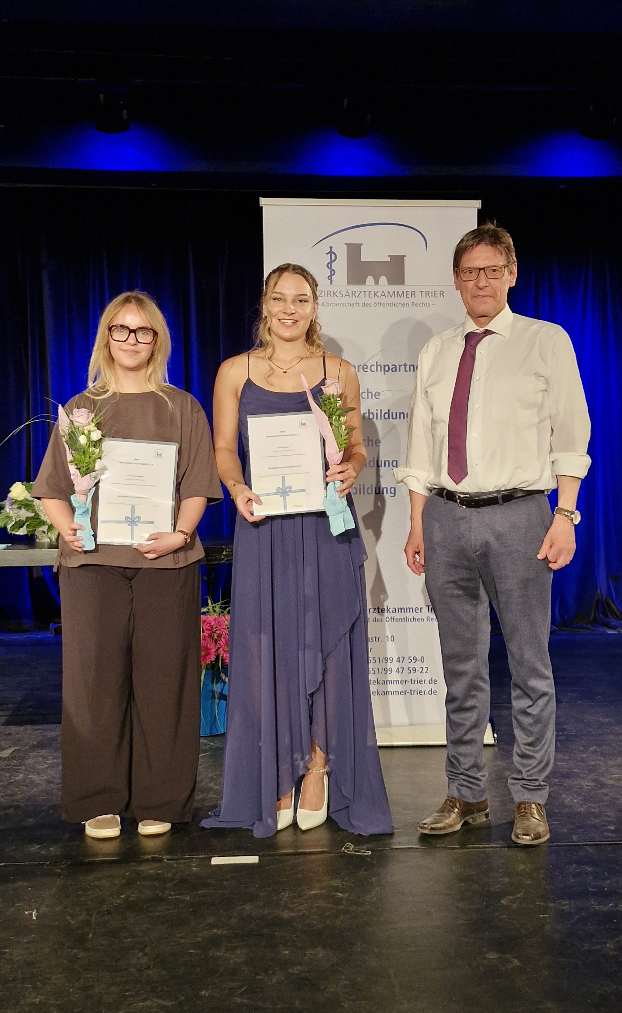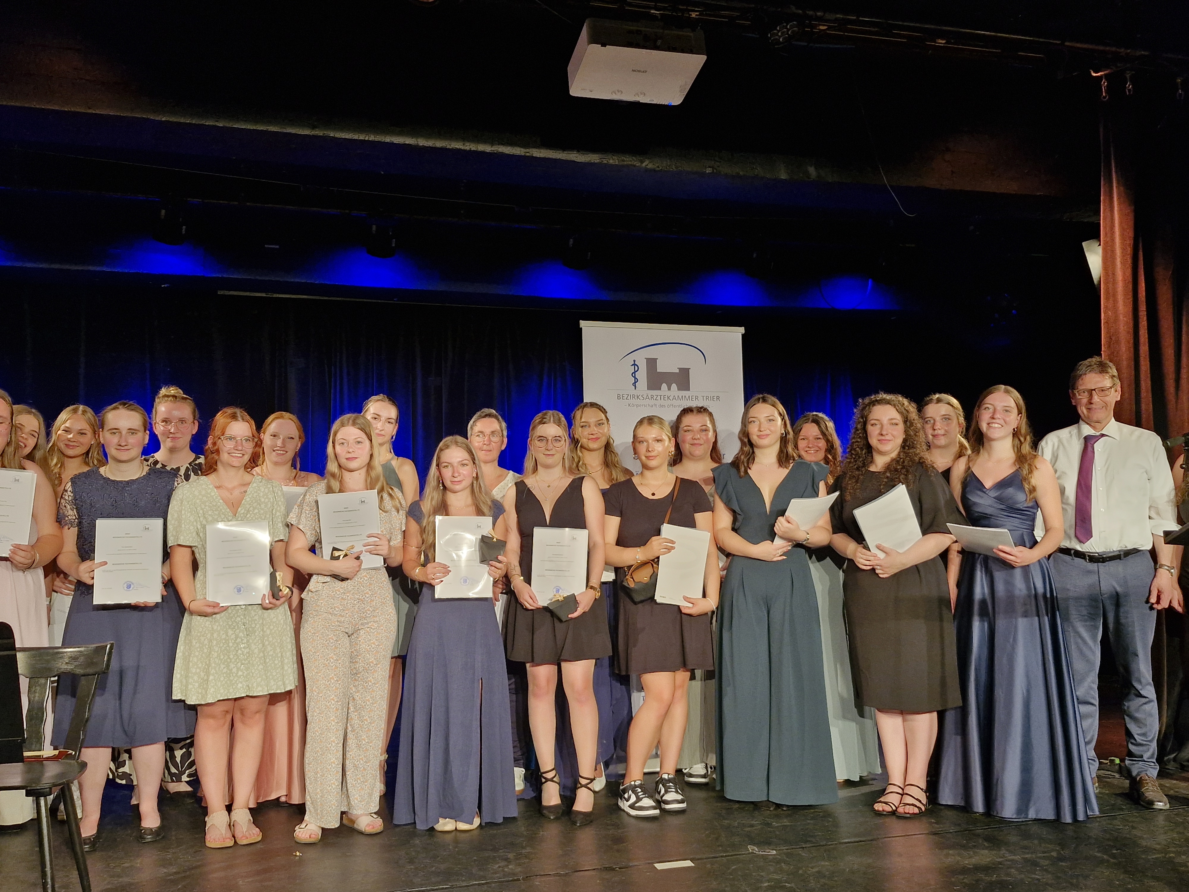Der Präsident der Bezirksärztekammer Trier, Herr Dr. med. Walter Gradel, gratulierte den Absolventinnen und Absolventen herzlich und sprach ihnen seine besten Wünsche für einen erfolgreichen Start ins Berufsleben aus.