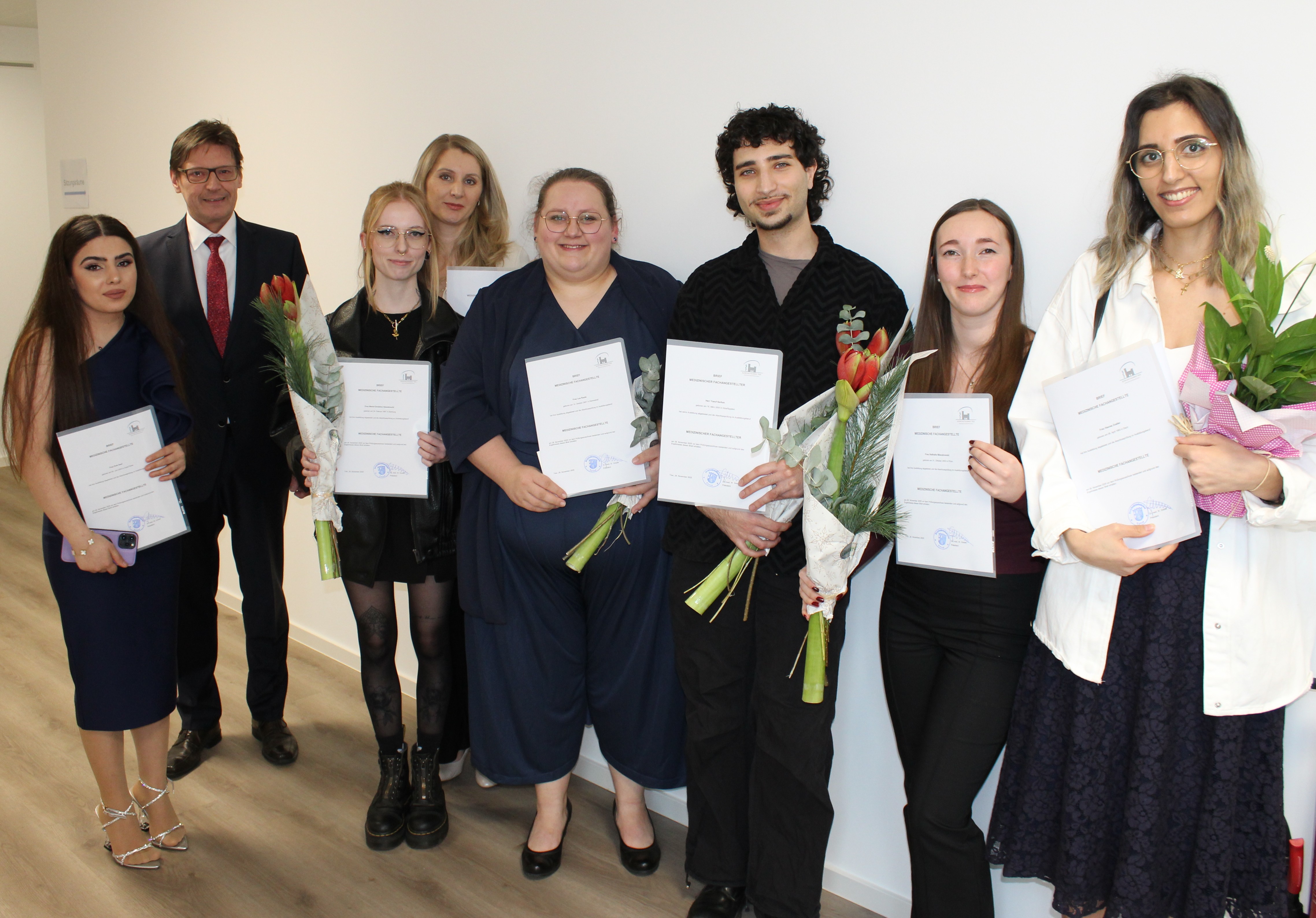 In einer Feierstunde wurden den sechs Absolventinnen und einem Absolventen der Winterprüfung der Medizinischen Fachangestellten die Prüfungszeugnisse und der MFA-Brief überreicht. Viermal wurde die Note „sehr gut“ verliehen.